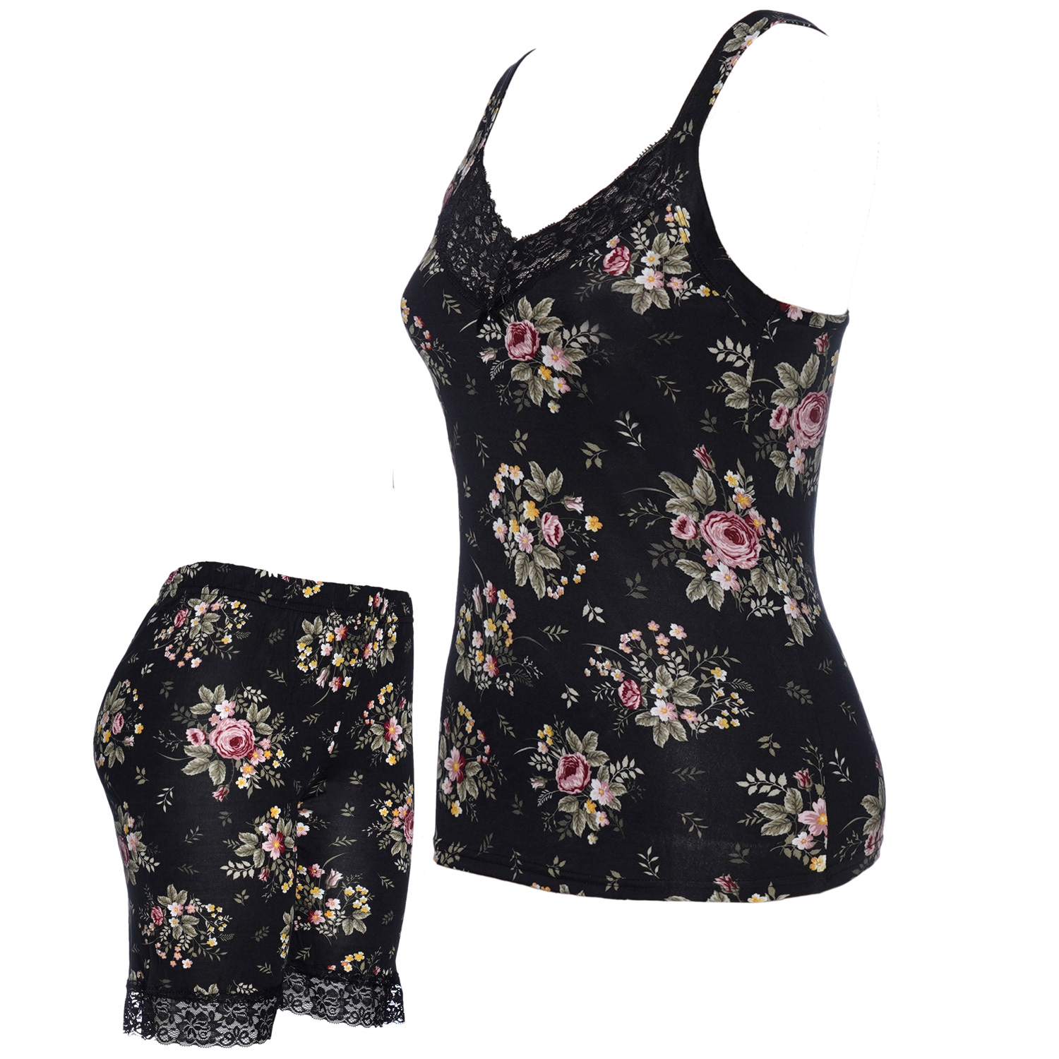 جزیِات مدل: بالای سینه تاپ گیپور به کار رفته و لبه پایین شلوارک گیپور