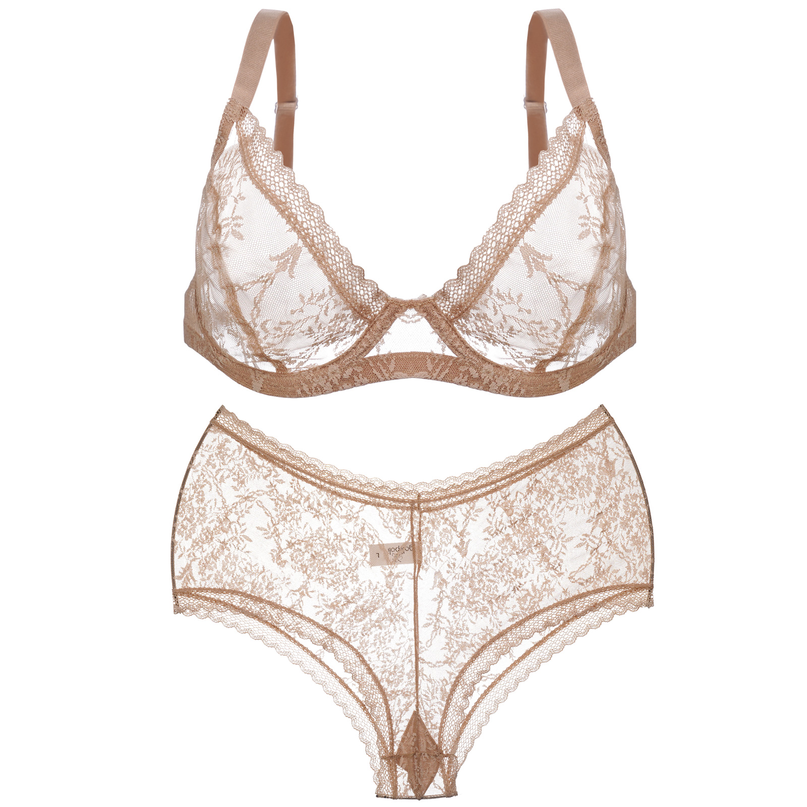 ست لباس زیر زنانه فنردار تمام گیپور برندگالیپولی- gallipoli مدل 31123
